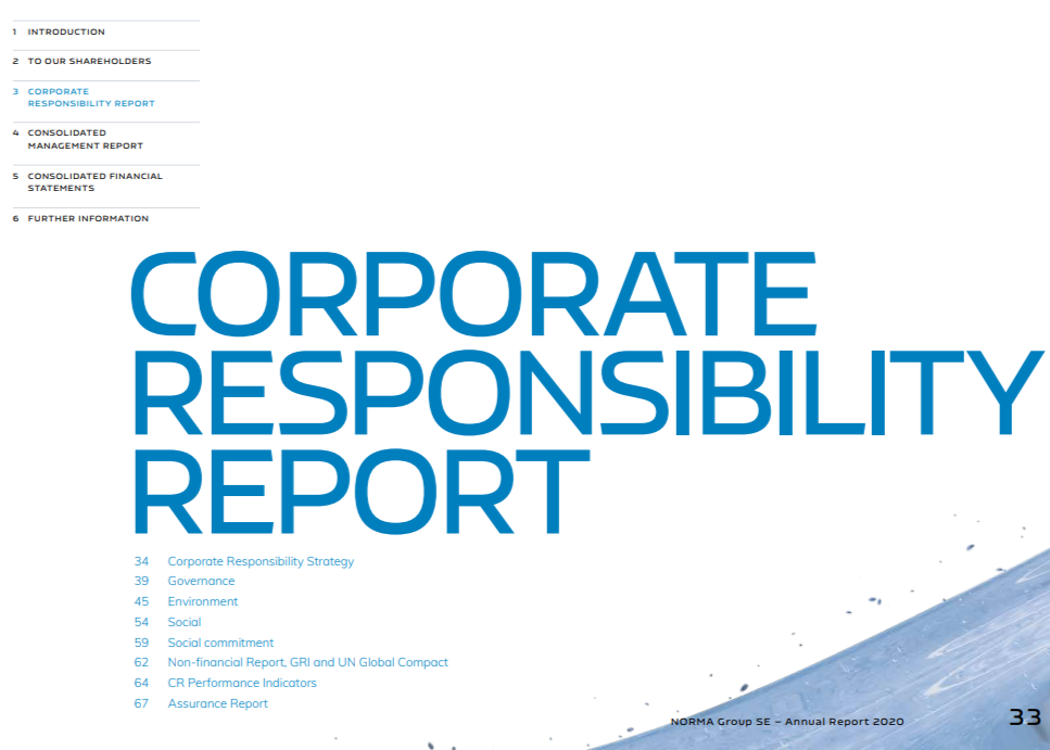 Depuis 2013, le groupe NORMA informe régulièrement ses parties prenantes sur la gestion stratégique des enjeux matériels de durabilité ainsi que sur l’intégration de la durabilité dans les processus opérationnels mondiaux.