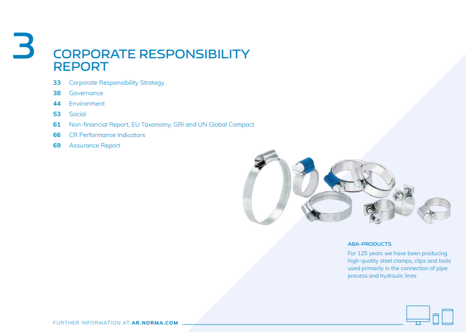 Dal 2013, il Gruppo NORMA informa regolarmente i propri stakeholder sulla gestione strategica di temi di sostenibilità materiale e sull'integrazione della sostenibilità nei processi aziendali globali.